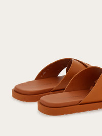 Perfect for more casual looks around town or for leisure on the beach, these sandals are crafted from soft calfskin with a double crossover strap on the toes. The 3D brand name has been made using a high-frequency technique, adding refined and original custom detailing. Slightly padded insole and a rubber sole with a custom design. - Composition: calfskin - Made in ITALY - Product code: 028618 774326