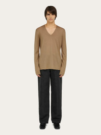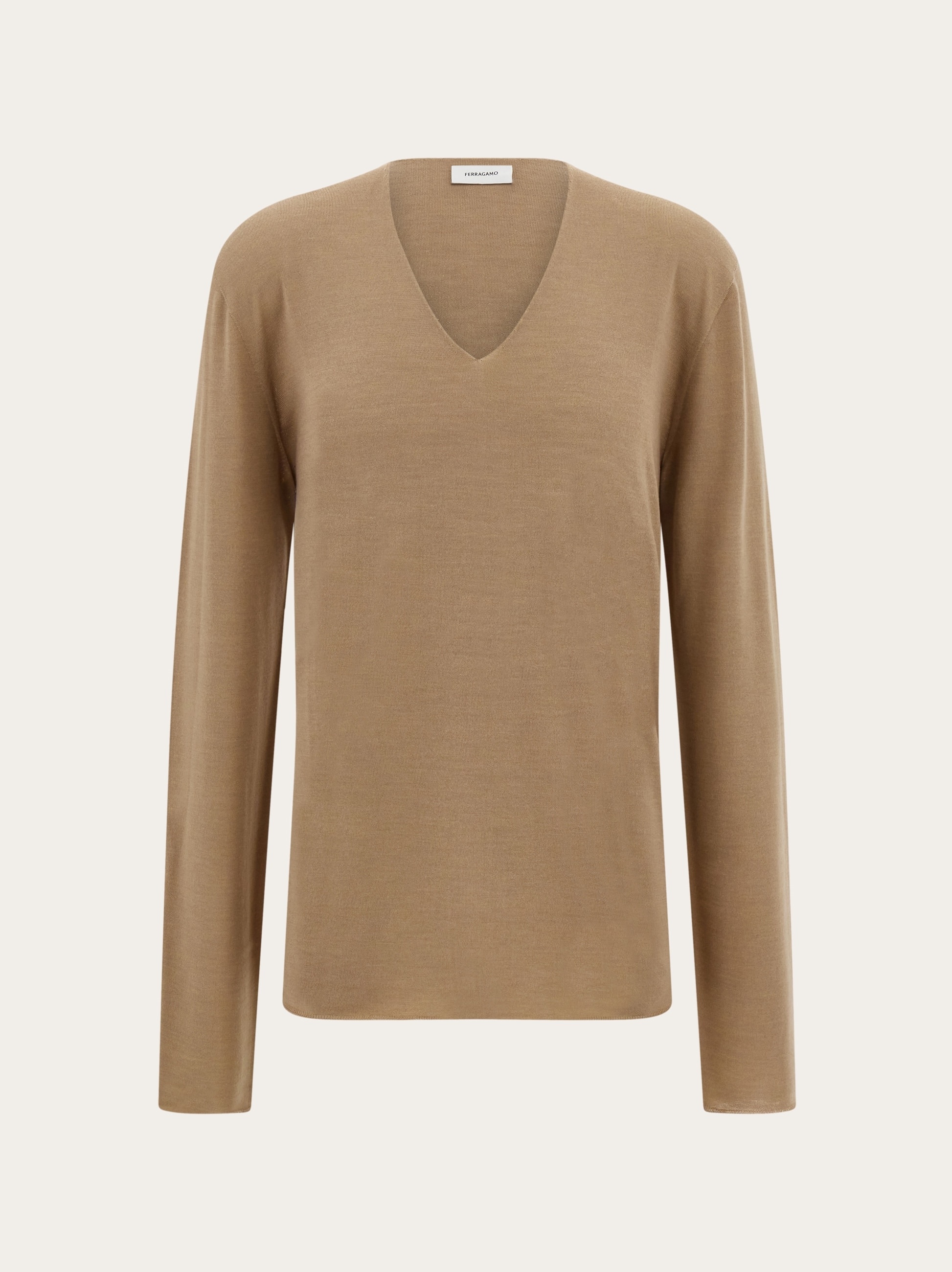 The seamless construction of this lightweight knit echoes a contemporary feel. With the cleanest lines and rolled edges, this V-neck is the perfect warm weather cover up for laid back sophisticated looks. - Composition: 35% cashmere, 35% polyurethane, virgin wool, 30% silk - Made in ITALY - Product code: 122670 782954