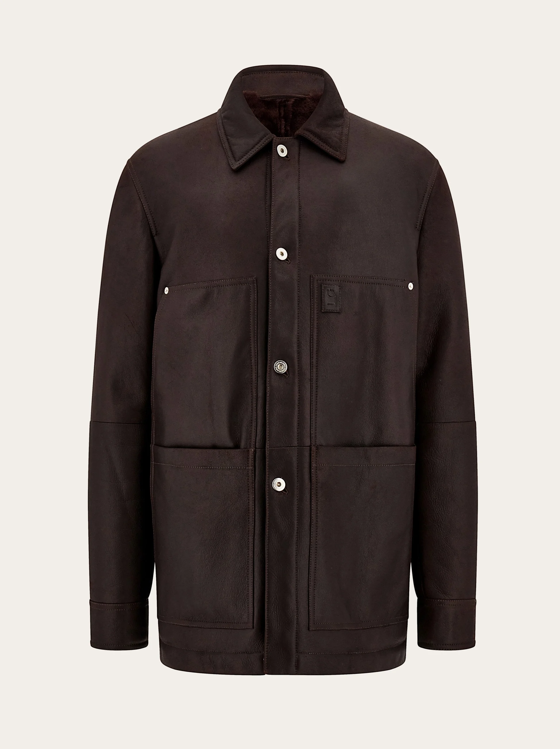 An investment piece to add to the forever style arsenal, this sheepskin blouson is sharp yet super soft. Featuring a shirt collar and utility-inspired patch pockets, the leather-side-out design ensures comfort and warmth with a luxurious finish. Punctuated by custom metal buttons and rivets, and a Hug logo patch on the front. - Composition: merino sheepskin - Made in ITALY - Product code: 144845 786292