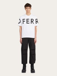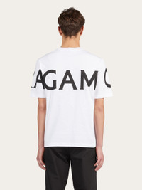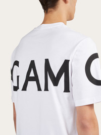 A wardrobe classic with a bold touch: this pure cotton jersey t-shirt is emblazoned with a large logo that begins at the front and wraps around the back of the chest. Available in seasonal shades, it has a relaxed fit with short sleeves and a ribbed crew neck. - Composition: 100% cotton - Product code: 122303 771468 - Made in ITALY