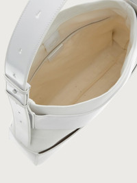 A new avant-garde take on the shoulder bag with a brushed calfskin structure. The cut-out lines provide a glimpse of the second shell, made from canvas. Large and spacious, it is complemented by the zipped pocket and slots. Adjustable shoulder strap. - Composition: calfskin and fabric - Made In ITALY