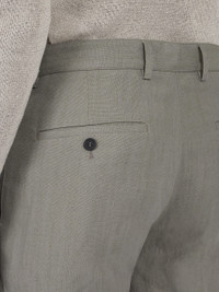 Light linen and viscose tailored trouser with a regular fit and sporty look. The encased waistband features belt loops and an exposed button fastening, with fillet pockets at the hips and welt pockets at the back. The straight leg has an ironed crease on the front and back, and a small custom tab is placed on the side. - Composition: 54% viscose, 46% linen - Made in ITALY - Product code: 143812 773474