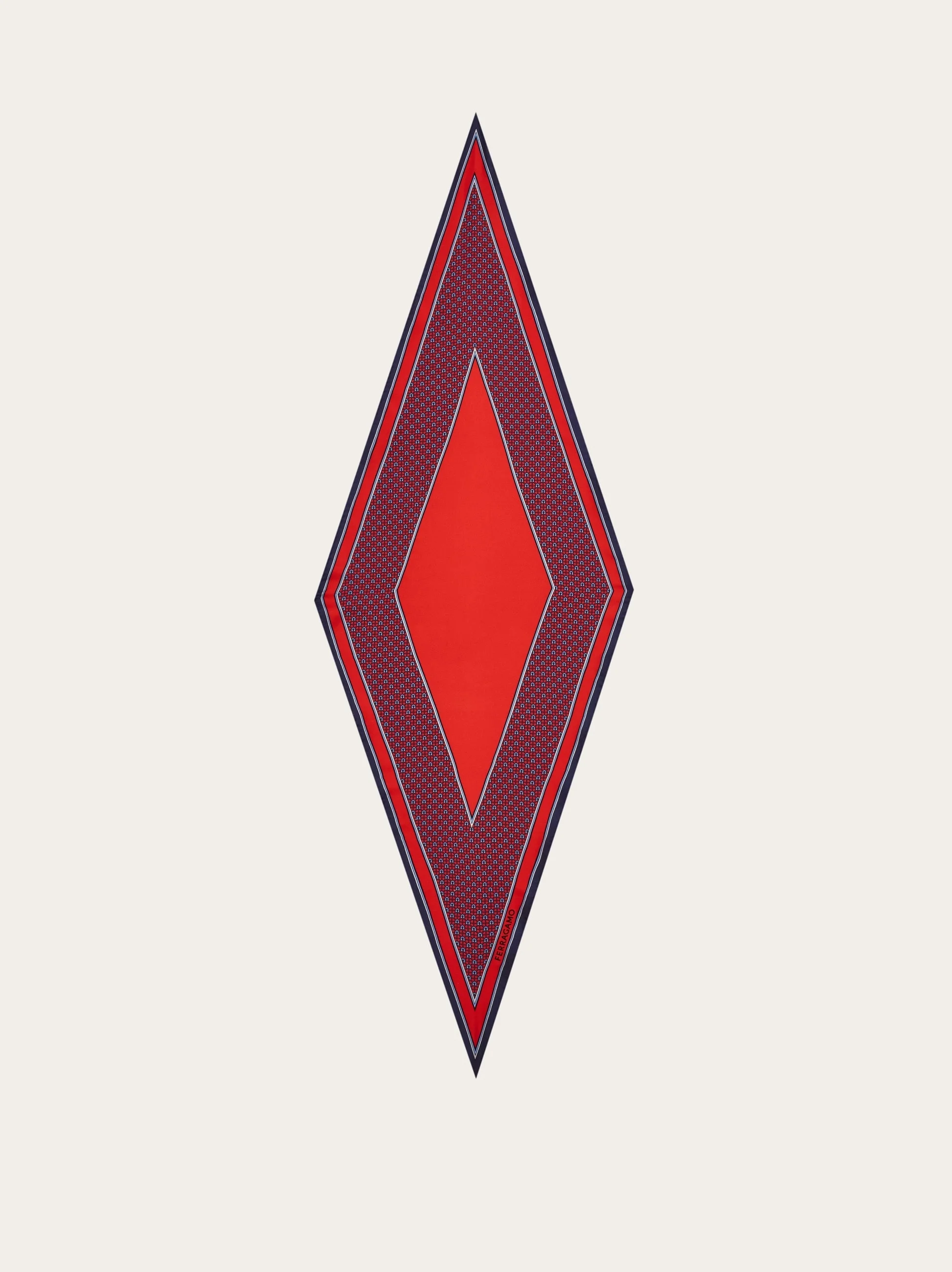 Silk neckerchief with a contemporary silhouette. The diamond pattern enhances the unique shape of this silk scarf which can be tied at the wrist, added to a bag, or worn around the neck. - length 47.2 IN width 15.7 IN - Composition: 100% silk - Made in ITALY - Product code: 520147 785266