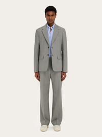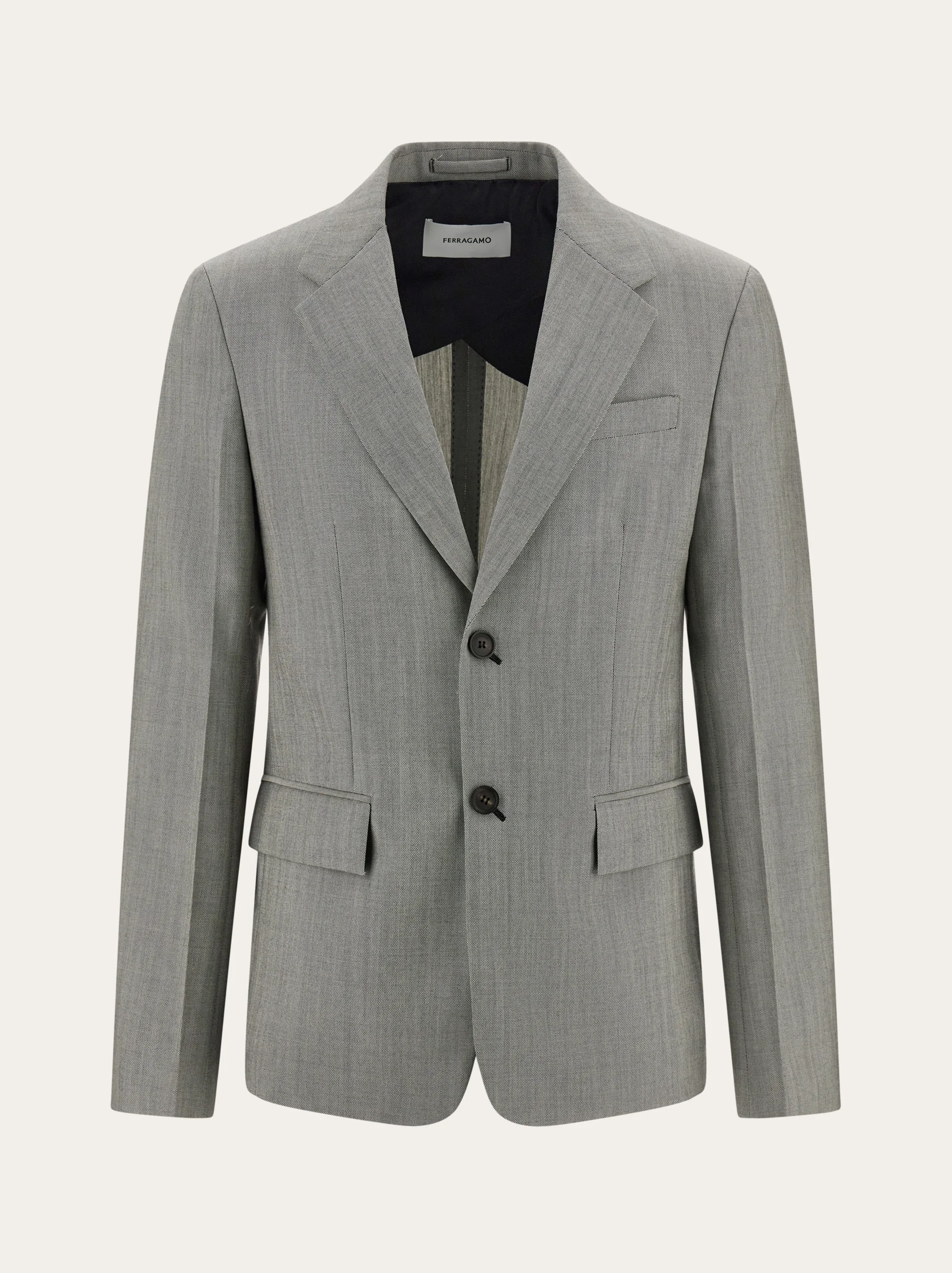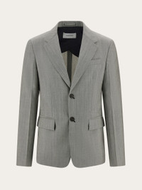 A cut above: single breasted wool and mohair tailored jacket, with wide lapels and flap pockets at the hips. Diagonal eyelets with contrasting stitching confirm a unique style with two back vents for a most flattering fit. Partially lined with internal pockets. Pair with the matching trouser for a current take on business wear. - Composition: 87% pure virgin wool, 13% mohair - Made in ITALY - Product code: 144338 780850