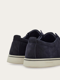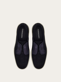 This slip-on sneaker combines a dynamic design with faux lace-up ties, inspired by classic Derby shoes. Stamped with the signature Gancini detail in a 3D finish, it features distinctive side panels and elastic inserts for a comfortable fit. The rubber sole is accented with a contrasting edge and an embossed logo on the side. - Composition: nubuck - Made in ITALY - Product code: 02A000 786896