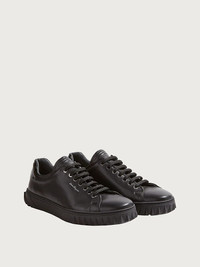 Lace up sneaker in a dual finish calfskin leather. This shoe has a chic allure with fashion details. The minimal silhouette is enhanced by the custom sole with shark tooth detail and a silver signature on the side. Sporty and elegant, they are perfect with casual daywear and add a fashion touch to any business look. - Composition: calf leather and patent - Made In ITALY