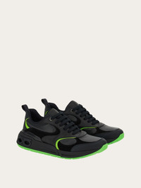 Dynamism and texture with iconic details bring this nineties inspired sneaker to life. The leather upper features suede inserts and a bold contrasting swirl that matches the tread. Double Gancio on the side of the heel. - Composition: calfskin - Made In ITALY