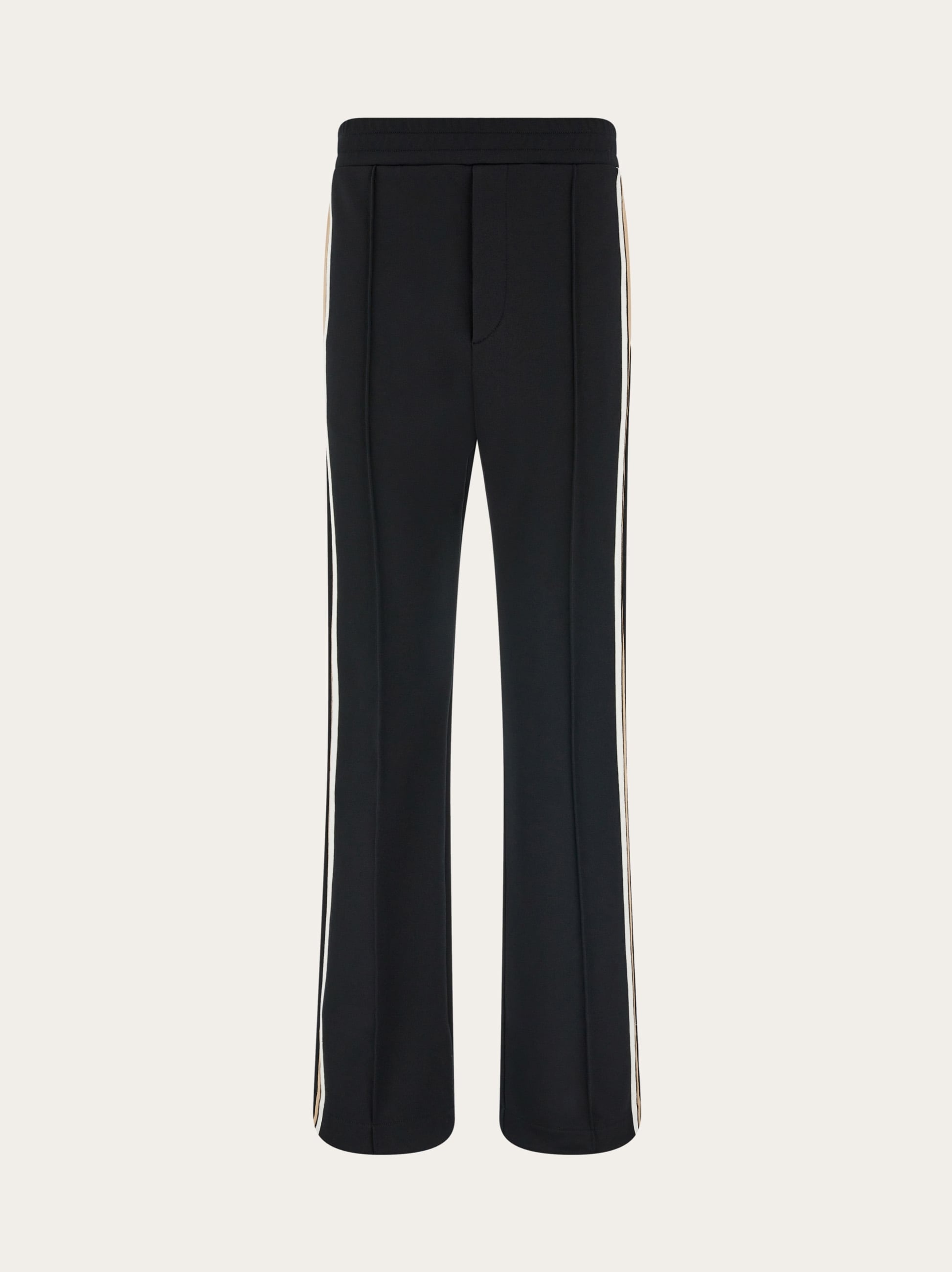 Pair these sporty pants with a dress shoe for an on trend look that is comfy, casual, and super cool. Made of technical cotton with recycled polyester, the relaxed fit features an elasticated waist, side pockets and a two tone stripe that runs along the length of the leg. Two large patch pockets with contrasting logo complete the design. - Composition: 54% recycled polyester and 46% cotton - Made in ITALY - Product code: 122422 776118