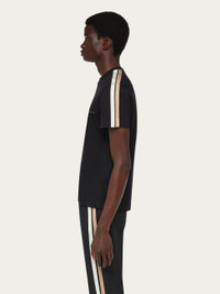 Vintage inspired organic cotton t-shirt with two bold stripes along the shoulder. With its crew neck and regular fit, this cool cotton tee is perfect for off duty looks. Pair with the matching tracksuit trouser for the full impact. - Composition: 100% organic cotton - Made in ITALY - Product code: 122434 776294