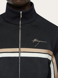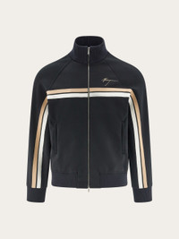 A color block dual stripe runs across the width of this zip up jacket in sophisticated tones. With a high neck and ribbed trims, this sporty cover up is ideal for off duty looks, and pairs well with both smart and casual pieces. Your go to for contemporary style. - Composition: 54% recycled polyester and 46% cotton - Made in ITALY - Product code: 122421 776141