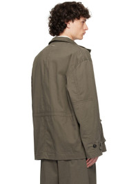 Stretch cotton twill jacket. · Stand collar · Concealed button closure · Flap pockets at chest · Pleated flap pockets at front · Adjustable button tab at cuffs · Logo plaque at back collar · Welt pockets at interior · Bungee-style drawstring at interior waist · Full plain-woven cotton-blend lining Supplier color: Concrete Body: 97% cotton, 3% elastane. Lining: 52% viscose, 48% cotton. Made in Italy 251270M180002