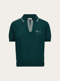 A sophisticated take on the classic polo shirt, in a carefully curated silk blend for a light, smooth feel. The construction features an open V-neck, with a play of stripes and thin ribs, contrasting red thread on the inside of the sleeve and an embroidered signature on the chest. - Composition: 55% silk, 45% cotton - Made in ITALY - Product code: 144679 786285