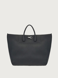 The perfect holdall for the contemporary gent, this sleek tote is chic and refined. Part of the Ferragamo Studio Line, it is made of calf leather with a beautiful, natural grain, and a short top handle, Gancio slider clasp and recognizable metallic studs on the base. The removable shoulder strap offers a hands-free styling option. - Composition: calf leather - Made In ITALY