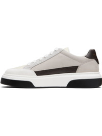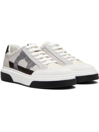 Low-top paneled calfskin suede and buffed calfskin sneakers. · Lace-up closure · Logo embossed at padded tongue · Padded collar · Logo printed at heel tab · Logo applique at outer side · Jersey lining · Logo embossed at rubber midsole · Treaded rubber sole Supplier color: White/Mascarpone Upper: calfskin, textile. Sole: rubber. Made in Italy 252270M237010