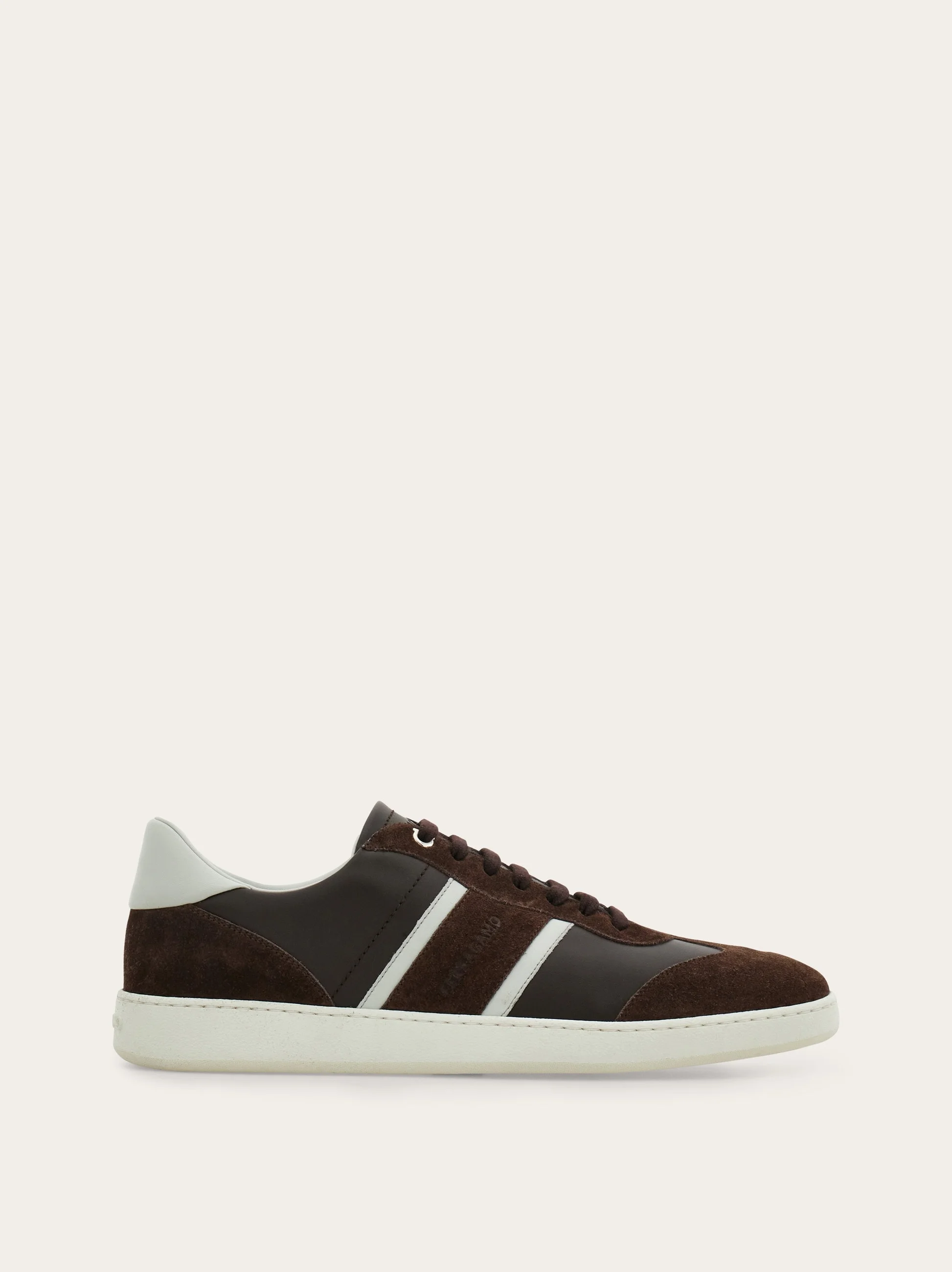 Vintage inspired low rise sneaker, with a soft suede upper and tonal inserts on the sides, tongue and heel tab. Custom signature on the side. Cassette sole with custom tread. - Composition: calfskin leather and suede - Made in ITALY - Product code: 021572 789115