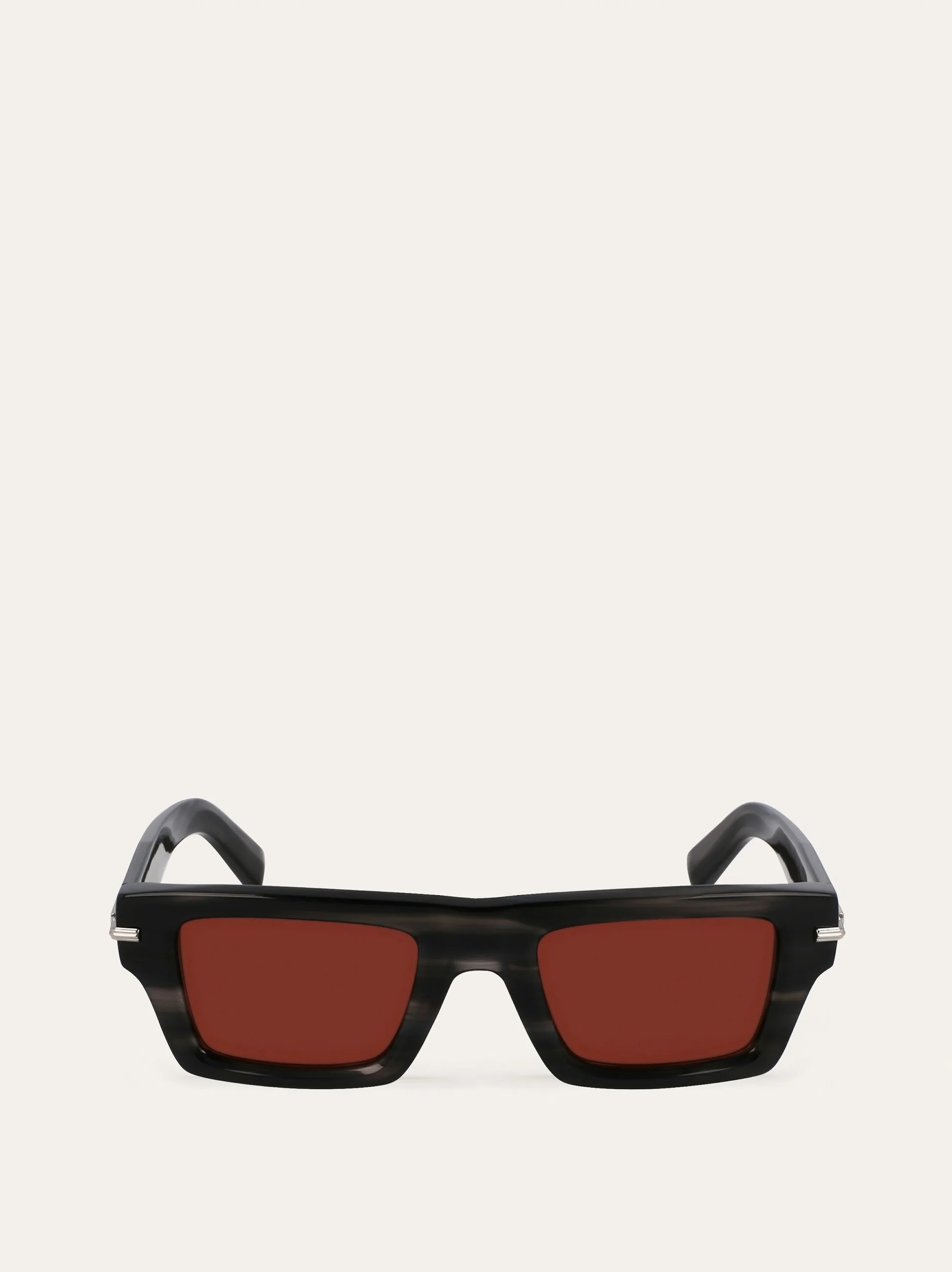Rectangular men's acetate sunglasses with a flat top. The temples feature a prism ornament, both a decorative and functional element that acts as an end piece on the frame. - Composition: acetate - Anti-UV, anti-scratch lenses - Global fit. Lens-nose-temple sizes: 50-22-145 mm - Frame compatible with graduated lenses - Made in ITALY - Product code: 51H034 782117