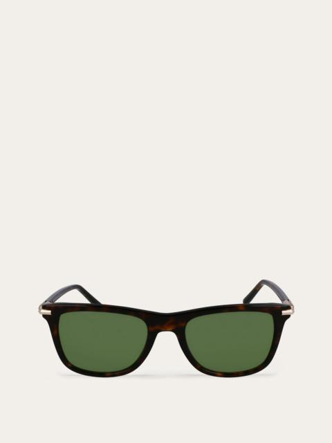 These men’s rectangular acetate sunglasses have elegant metal temples graced by a Gancini detail whose prism effect encapsulates the hinge and wraps round onto the frame, thus performing both a decorative and functional role. The thin metal temples have long acetate end pieces. The model comes in a choice of four colour combinations, each with contrasting lens and frame colours. - Composition: acetate - Anti-UV, anti-scratch lenses - Global fit. Lens-nose-temple sizes: 54-20-145 mm - Frame compatible with gradient lenses - Made in ITALY - Product code: 51H028 777068