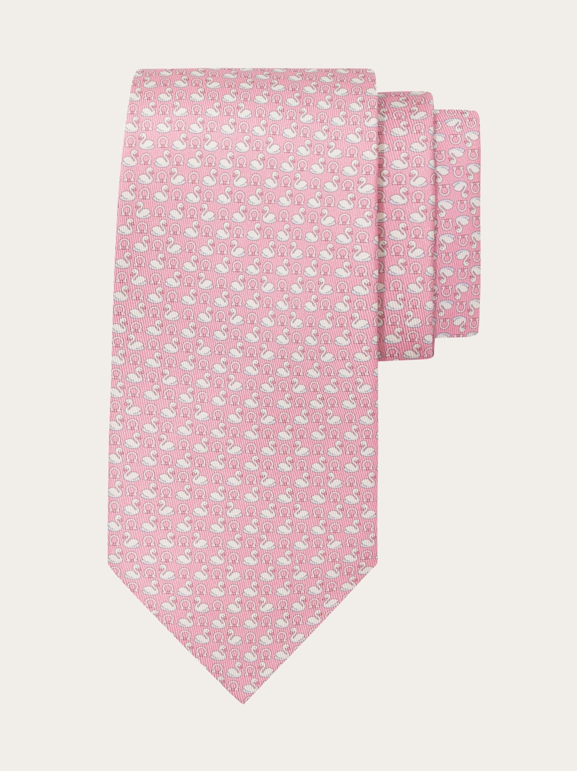 Elegant by nature, the swan composes with the Gancini silhouette a pattern of sinuous lines, perfectly balanced in color. The result is a printed tie with a refined atmosphere, rich in symbolism and dedicated to the most demanding gentlemen. - Composition: 100% silk - Width at the bottom: 8 cm - Made in ITALY - Product code: 351239 779208