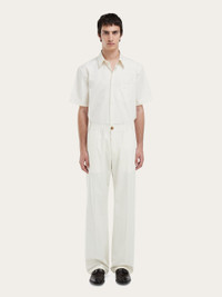 The relaxed jogger meets the tailored trouser: new crepe cotton viscose jogger trouser with tailoring details such as a premade waistband with elastic insert and concealed zip. Slit pockets at the sides and a welt pocket on the back complete the design. - Composition: 91% cotton, 9% silk - Made in ITALY - Product code: 144746 790201