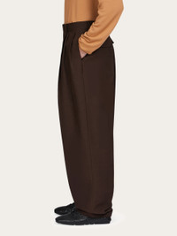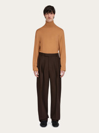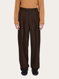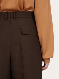 Tailored trousers with a soft volume on the leg, three darts at the waist, and a taper towards the ankle. The coolest of silhouettes features a custom internal belt and double hook fastening with asymmetrical tab. - Composition: 73% viscose, 27% pure virgin wool - Made in ITALY - Product code: 144871 788790