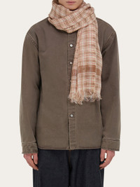 Generously sized and lightweight, this pure linen stole is adorned with a tartan pattern in harmonious hues. Finished with an embroidered logo at the edge and fringe along the short sides. - length 78.7 IN width 28.7 IN - Composition: 100% linen - Made in ITALY - Product code: 520137 783404