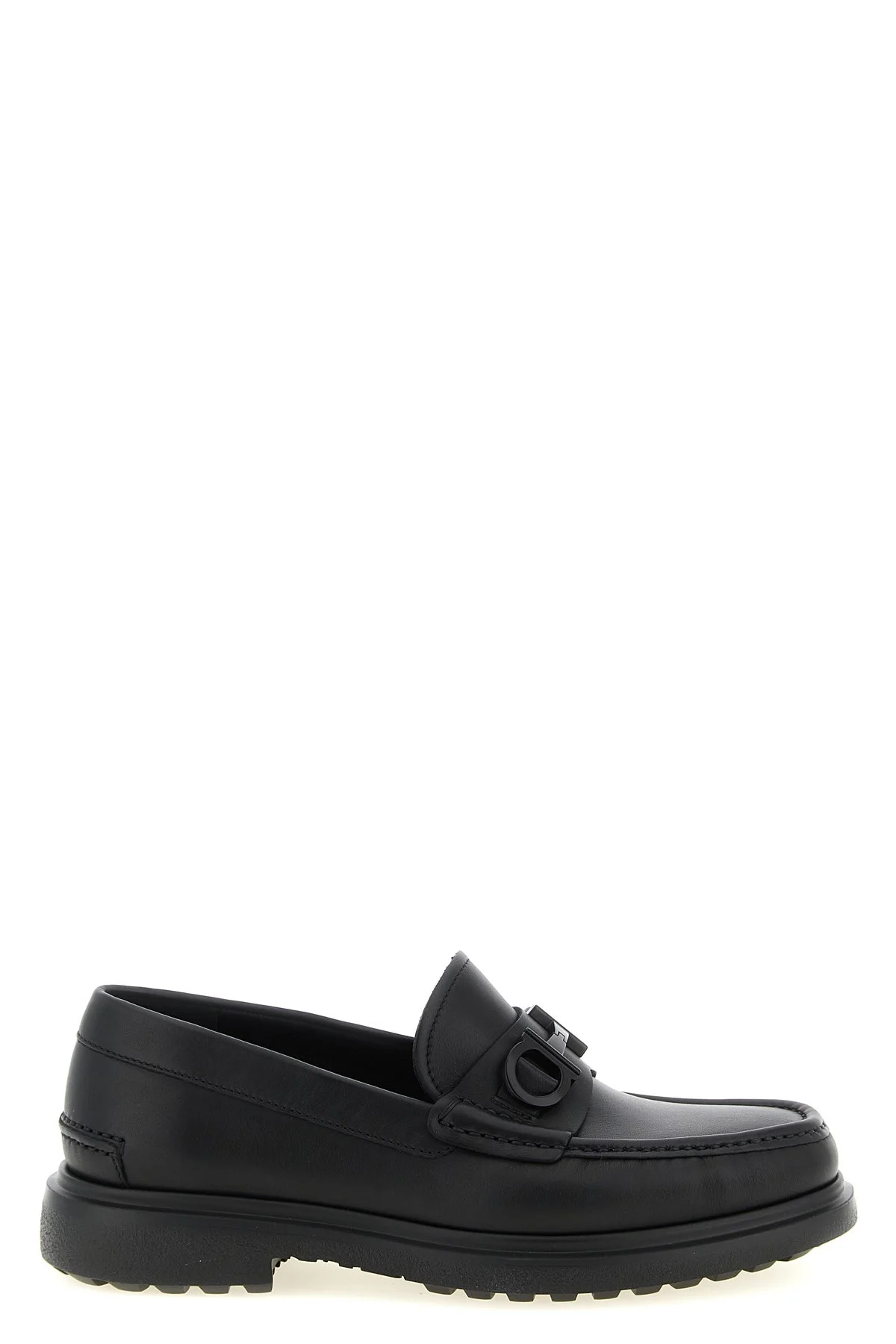 cod. 789572NERO 'Tobias' smooth leather loafers with tone-on-tone metal 'Gancini' detail on the front, rubber sole. Color: Black Size & Fit: US FERRAGAMO SIZE - EEE Fit Composition: 100% calfskin leather (Bos Taurus) Made in: Italy