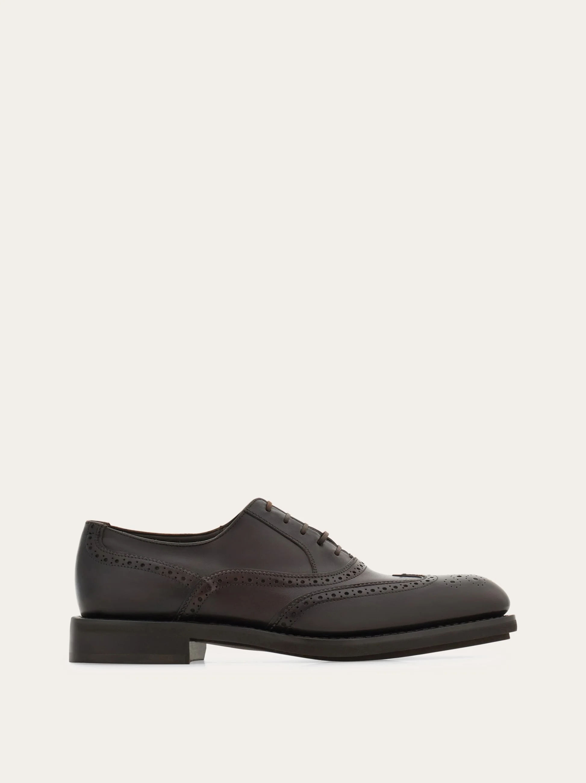 A current take on a gentlemen’s classic: almond-shaped derby shoe made of supple calfskin leather with a natural grain. The slight camber at the toe, wingtips and broguing detail confirm an original shoe, with protruding welt for an urban finish. Crafted by expert artisans, the Tramezza construction involves over 160 meticulous steps and six hours of work to achieve an impeccable fit that molds to the wearer's foot. - Composition: calfskin - Made in ITALY - Product code: 029596 778815