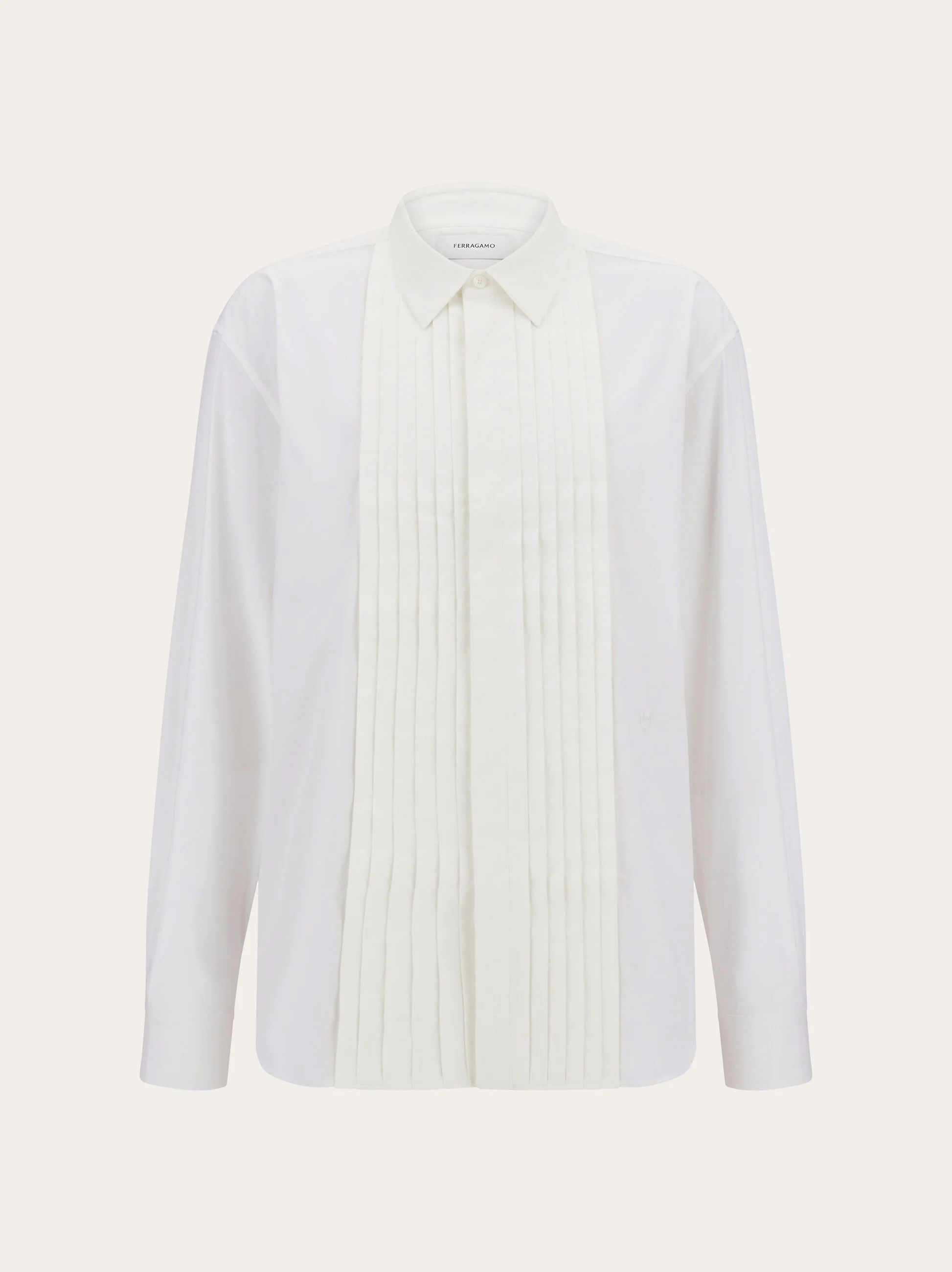 Keep it simple. Crafted from stretch cotton poplin, the impeccable silhouette of this refined tuxedo shirt features front pleats and a rounded hem. - Composition: 78% cotton, 17% polyamide, 5% elastane - Made in ITALY - Product code: 145368 791478
