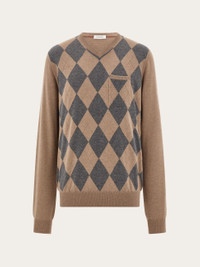 Presenting classic pieces in a new light, Maximilian Davis turns his attention to the V-neck sweater. Pure virgin wool is used to create this refined garment with a small pocket on the chest and argyle pattern on the front. The red thread details in the inner seams confirm its high-end status. Ribbed trims complete the design. - Composition: 100% pure virgin wool - Made in ITALY - Product code: 145152 788021
