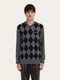 Presenting classic pieces in a new light, Maximilian Davis turns his attention to the V-neck sweater. Pure virgin wool is used to create this refined garment with a small pocket on the chest and argyle pattern on the front. The red thread details in the inner seams confirm its high-end status. Ribbed trims complete the design. - Composition: 100% pure virgin wool - Made in ITALY - Product code: 145152 788022