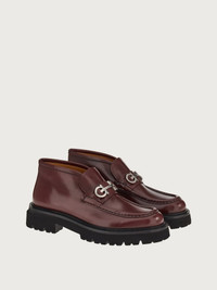 This new ankle boot is contemporary, and super cool. The semi-glossy calf leather is punctuated by raised stitching on the vamp, and a high tongue with a Gancio bit across the instep in a sleek shade of palladium. The gritty feel is enhanced by the rolled welt and bold sole made of ultra-light rubber, with custom tread. - Composition: calfskin - Made In ITALY