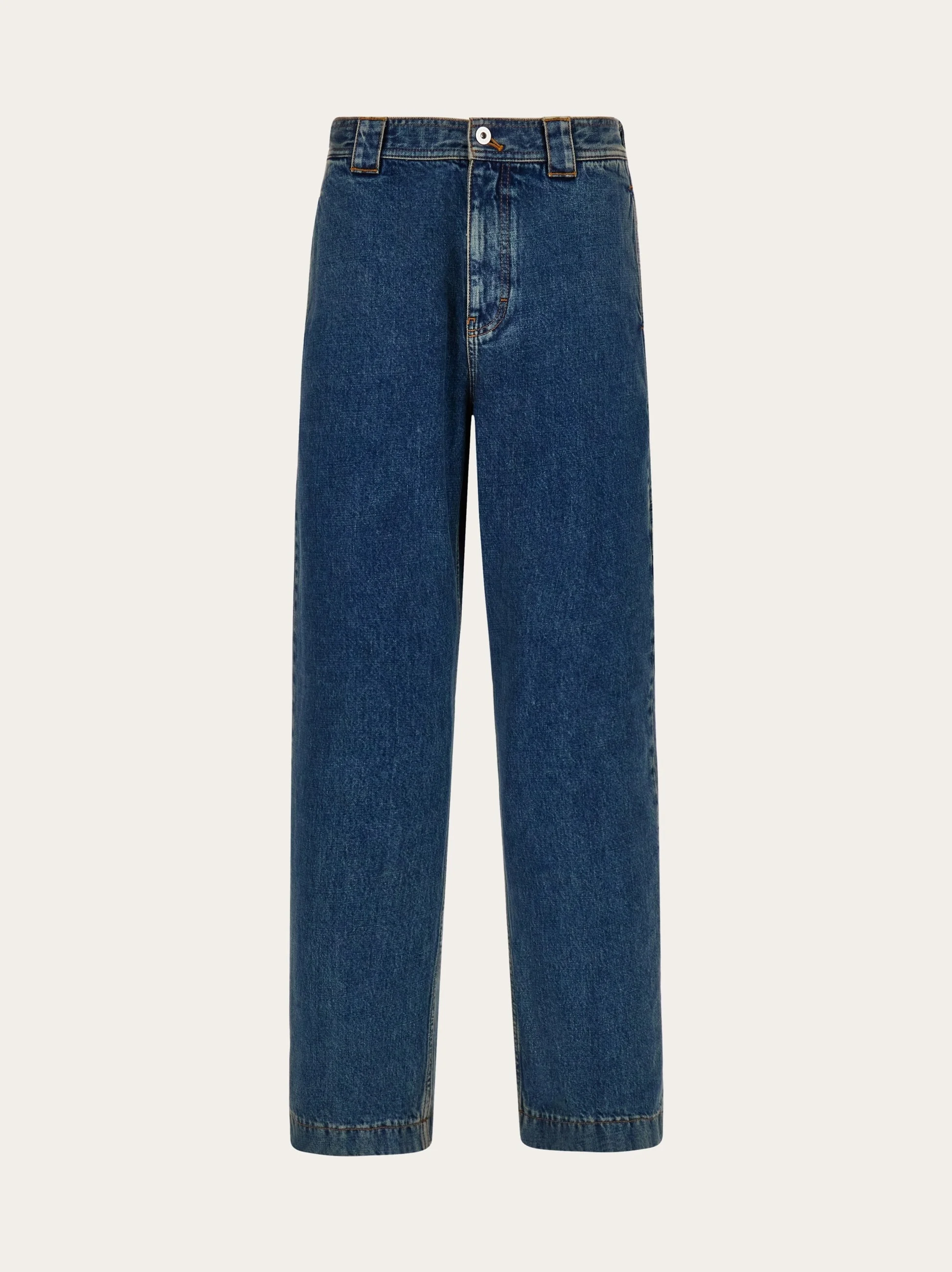 Utility-inspired trouser with five pocket details. Wide belt loops echo the workwear feel of the laser-washed cotton drill, with large patch pockets at the back. The straight leg with ironed crease duets with the double stitching to create the perfect balance between workwear and high fashion. Note the embossed leather tab at the back. - Composition: 100% cotton - Made in ITALY - Product code: 144756 785504