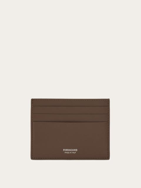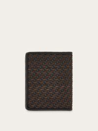 Bifold cardholder featuring an exquisite woven exterior, crafted on a loom with interlaced leather and contrast suede for a refined basketweave effect. Inside, flat pockets and card slots offer seamless organization. A sleek palladium-finish Gancini detail on the front adds a signature touch. - height 3.7 IN length 3.1 IN - Composition: calfskin and suede - Made in ITALY - Product code: 661707 787027