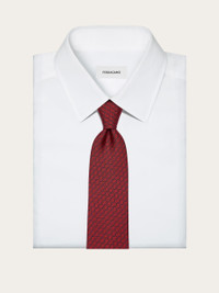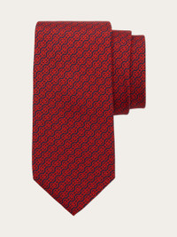 Pure silk twill tie decorated with a diagonal pattern of interwoven Gancini accents in a long chain. The diagonal placement brings regimental motifs to mind, in an interpretation that leaves no doubts over the elegance of the design. 8-cm tip for flawless styling, both for work and for more social events. - Composition: 100% silk - Made in ITALY - Product code: 350948 768528