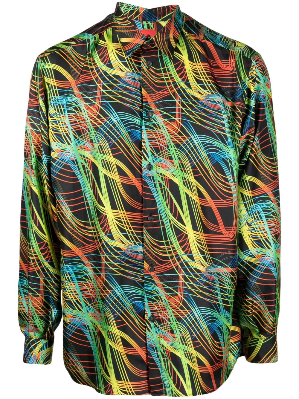 abstract-pattern silk shirt Highlights - Black/multicolour - Silk - Abstract pattern print - Pointed flat collar - Long sleeves - Buttoned cuffs - Front button fastening - Straight hem Made in Italy Composition Silk 100% Washing instructions Dry Clean Only