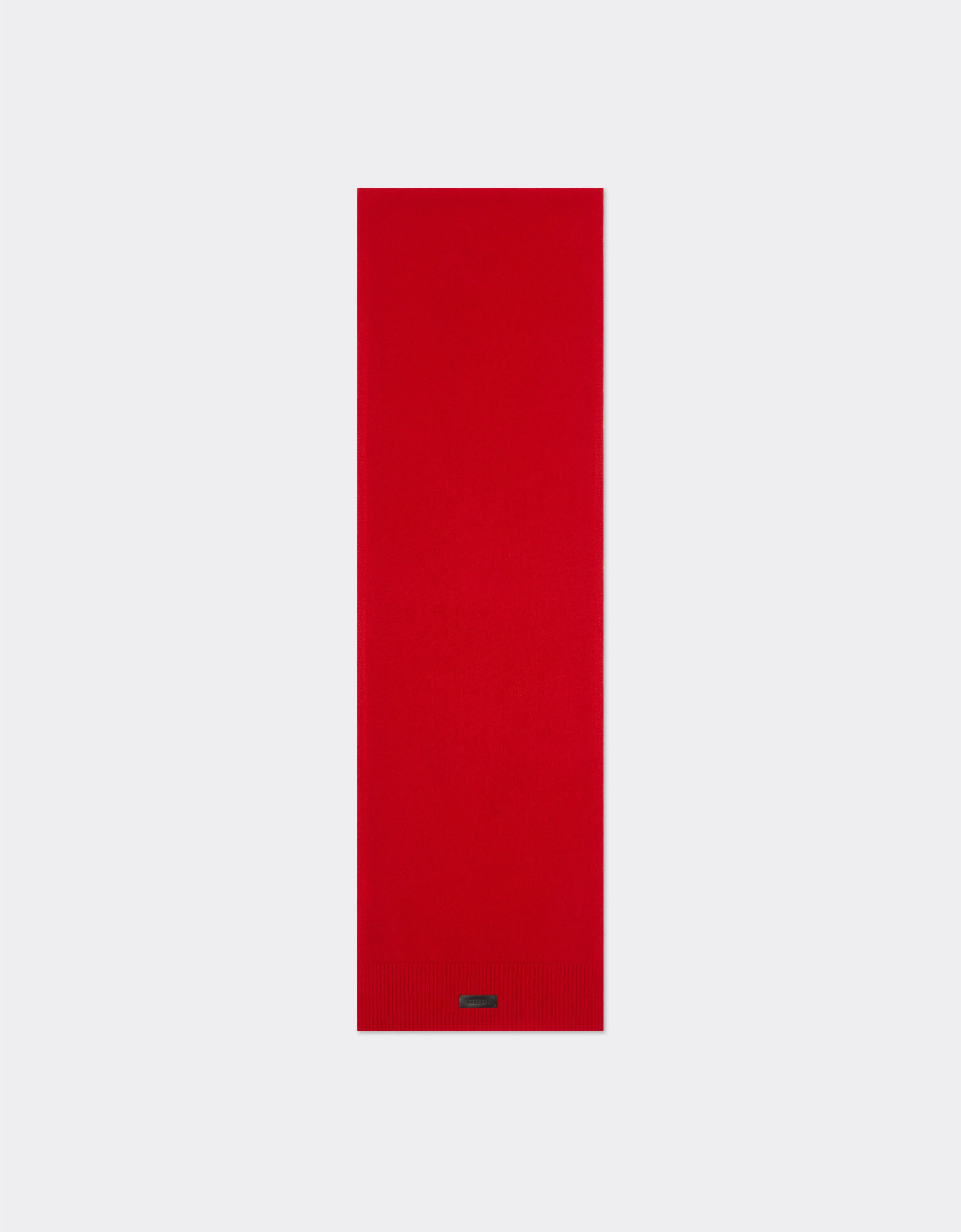 A smooth-knit cashmere scarf with a soft, enveloping feel and ribbed edges that define its volume. Enriched with a leather label with the Ferrari logo applied to the bottom, it combines discreet elegance and distinctive identity. DETAILS - Smooth knit construction - Ribbed hem - Ferrari leather label - Dimensions: 28 cm x 180 cm MATERIALS PR: 90%WO 10%WS Product Code: 21732f112