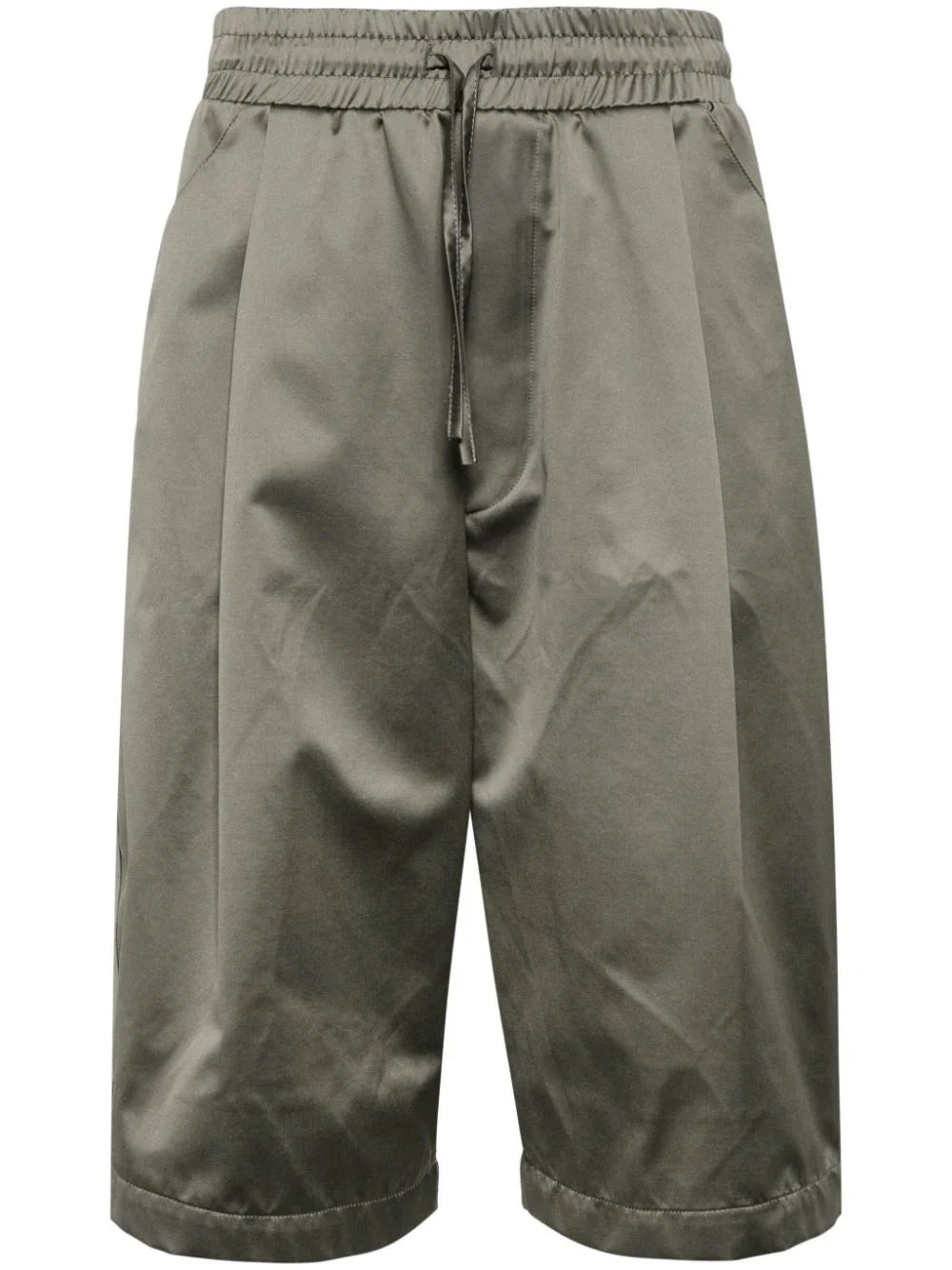 OLIVE GREEN RECYCLED POLYAMIDE BLEND ELASTICATED DRAWSTRING WAISTBAND PLEAT DETAILING SLIP POCKETS TO THE SIDES REAR PATCH POCKET BELOW-KNEE LENGTH