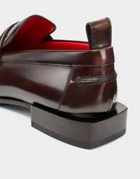 These brushed leather loafers embody the blend of inspirations at the heart of the Ferrari collection: ideal for driving and active days, yet also elegant and suitable for formal evenings. This Italian-made model features a bold shape with contoured toe and is enhanced with a non-slip sole boasting an exclusive design finished with the Prancing Horse emblem. With iconic red interior. DETAILS - Made in Italy - Contoured toe - Branded leather sole with non-slip detail and embossed Prancing Horse emblem - Red leather lining - Padded patch and label on the inside MATERIALS PR: 100%CALF LEATHER Product Code: 22013f03