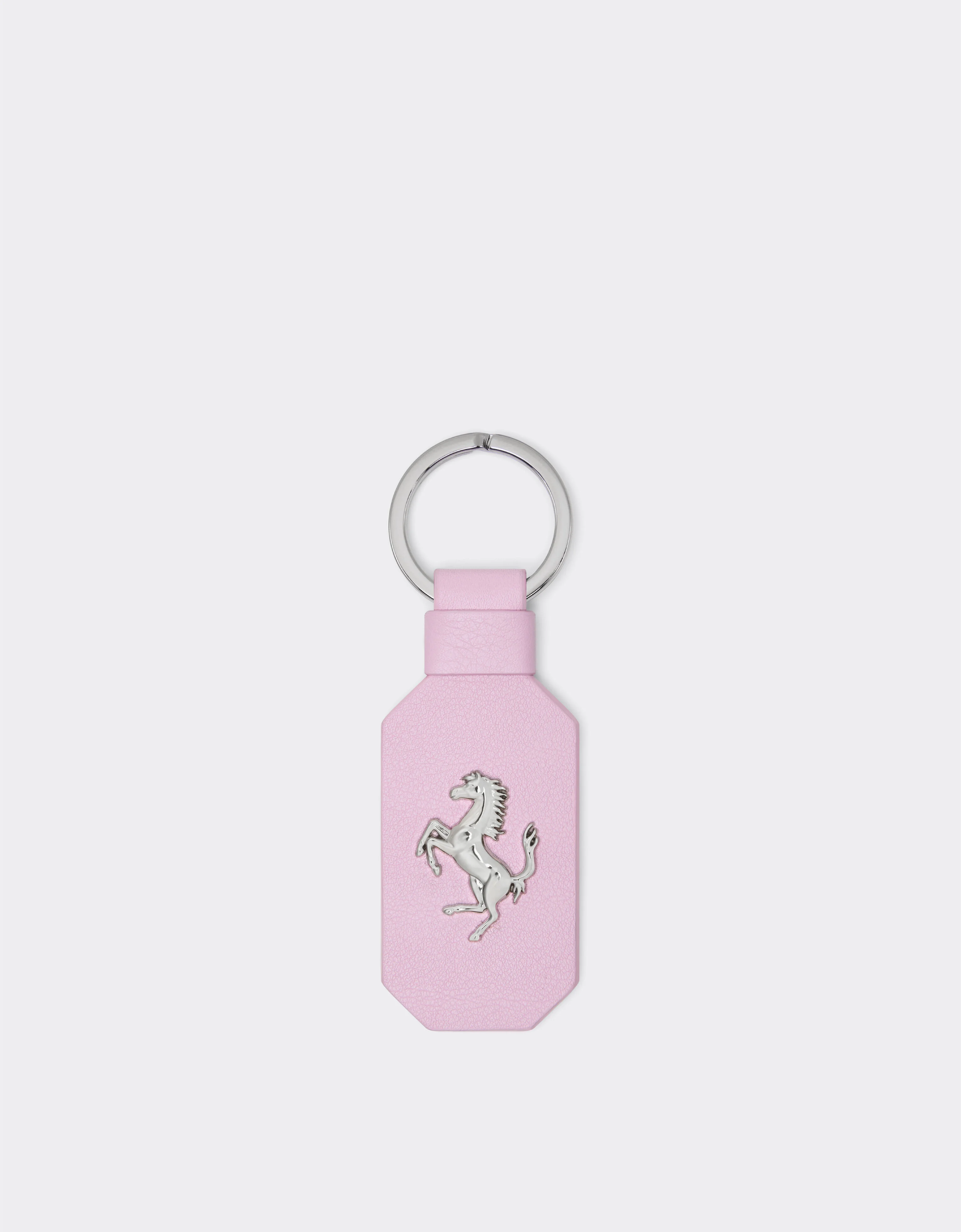An elegant design defines the style of the keychain made in Italy from fine leather. Featuring a leather tag with matching edges, it is embellished with the metal Prancing Horse emblem. DETAILS - Made in Italy - Matched Edges. - Metal Rampant Horse - Brise Ring - Metal details with ruthenium finish and Chassis anti-fingerprint treatment MATERIALS PR: BOS TAURUS-VA:100.0 Product Code: 49222f164