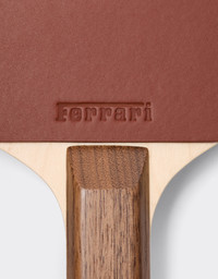 This table tennis set reinterprets a leisure classic with distinctive Ferrari aesthetic details. Includes two leather-covered wooden bats and three balls customised with the Prancing Horse. An adjustable shoulder strap in leather with ruthenium buckle and trim completes the kit. DETAILS - Leather shoulder strap with ruthenium-finish metal buckle - 2 leather-covered wooden rackets - 3 personalized balls MATERIALS PR: LECOWS:100.0 SC: WDWOA:71.0 Product Code: 50971f114