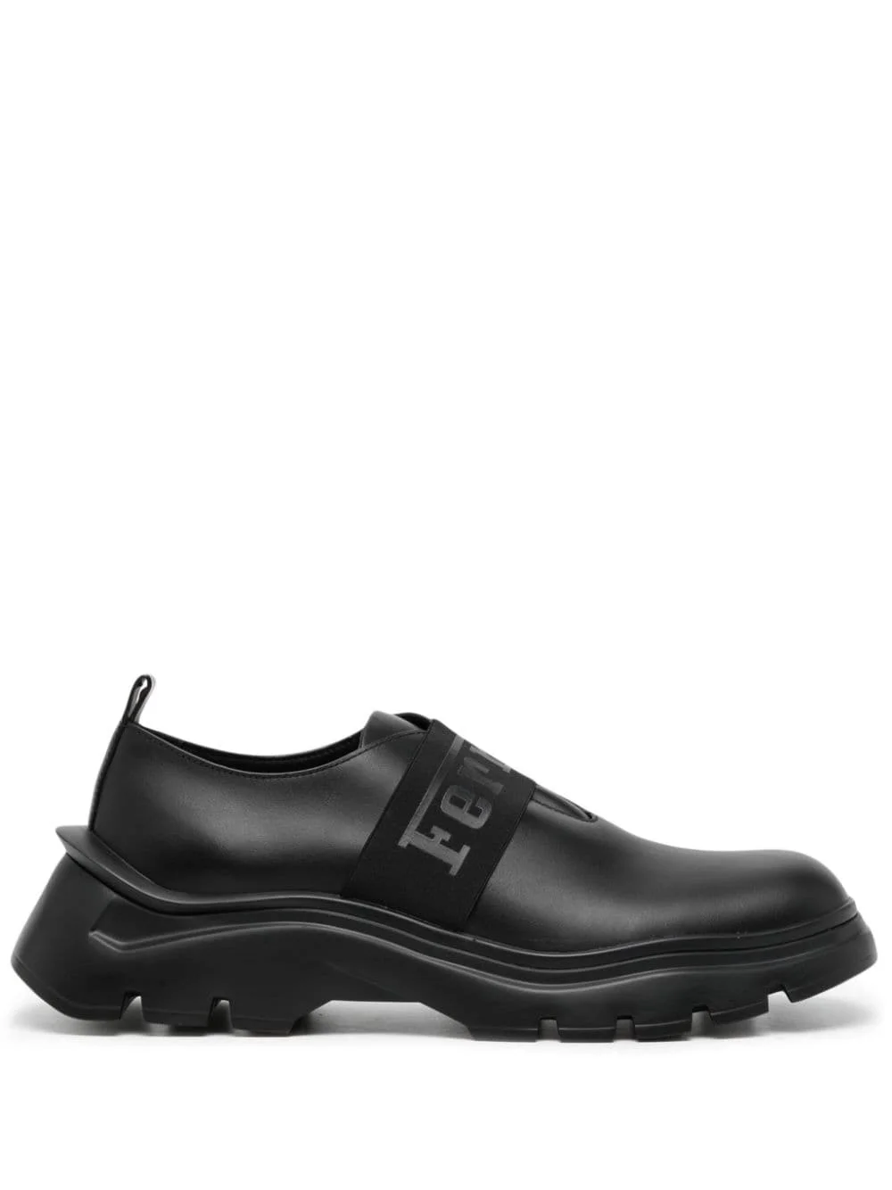 logo-strap leather sneakers Ferrari blends a maximalist chunky sole with a minimalist decoration in these leather sneakers. The pair boats a plain background, crossed by a tonal elasticated strap printed with the logo. Highlights - Black - Calf leather - Logo-print elasticated strap - Almond toe - Pull-tab at the heel - Slip-on style - Chunky rubber sole Made in Italy Composition Outer: Calf Leather 100% Lining: Calf Leather 100% Sole: Rubber 100% SIZE & FIT Measurement HEEL 1.96 in(5 cm) HEIGHT 1.96 in(5 cm) Sole height 0.78 in(2 cm)