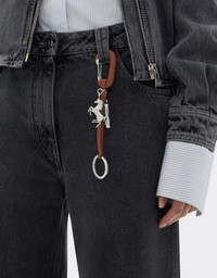 The metal and leather keyring combines functionality and refinement in an essential and iconic design. The carabiner wrapped in nappa leather strap adds elegance and strength, while the leather strap with split ring ensures practicality and versatility of use. The Prancing Horse and piston charms, emblematic symbols of the collection, add a distinctive touch and celebrate the brand's heritage. An accessory designed to hold keys or embellish bags and accessories with an unmistakable mark. DETAILS - Round leather-wrapped carabiner - Prancing Horse charm - Piston charm - Brise ring - Dimensions: 3 cm (W) x 15 cm (H) x 1 cm (D) MATERIALS PR: *LEATHER* OVIS ARIES-VA:100.0 Product Code: 50010f124