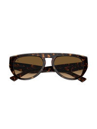 oval-frame sunglasses Highlights - Brown - Acetate - Oval frame - Brown tinted lenses - Curved tips - Logo-engraved arm - These glasses come with a protective case. Made in United States Composition Acetate 100% SIZE & FIT Measurement Arm Length 5.7 in(14.5 cm) Bridge Width 0.74 in(1.9 cm) Lens Diameter 2.2 in(5.6 cm) Total Width 5.15 in(13.1 cm)