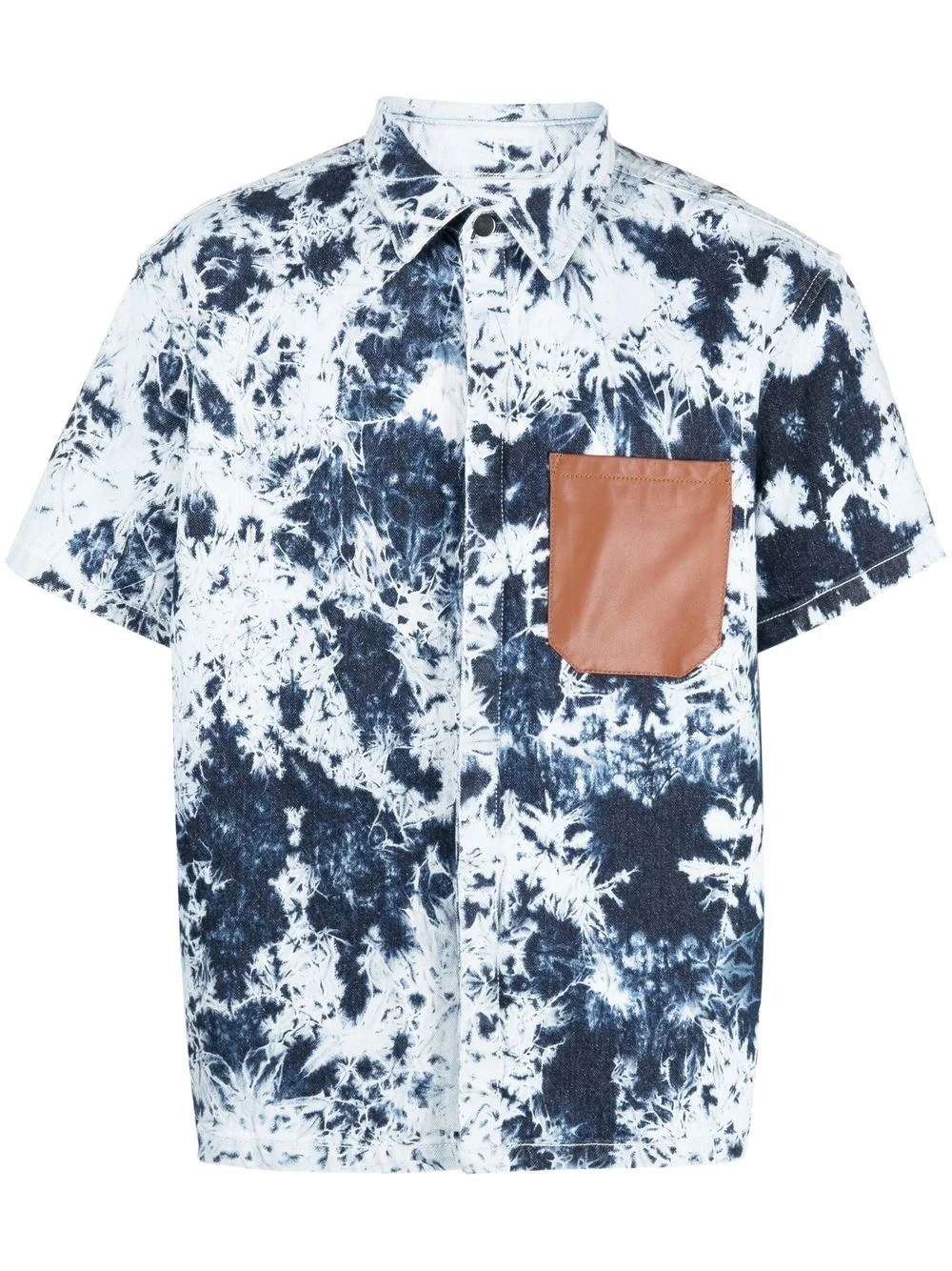 tie-dye patterned shirt indigo blue cotton tie-dye pattern classic collar chest patch pocket concealed front button fastening short sleeves straight hem Made in Italy Composition Cotton 99%, Elastane 1% Washing instructions Machine Wash