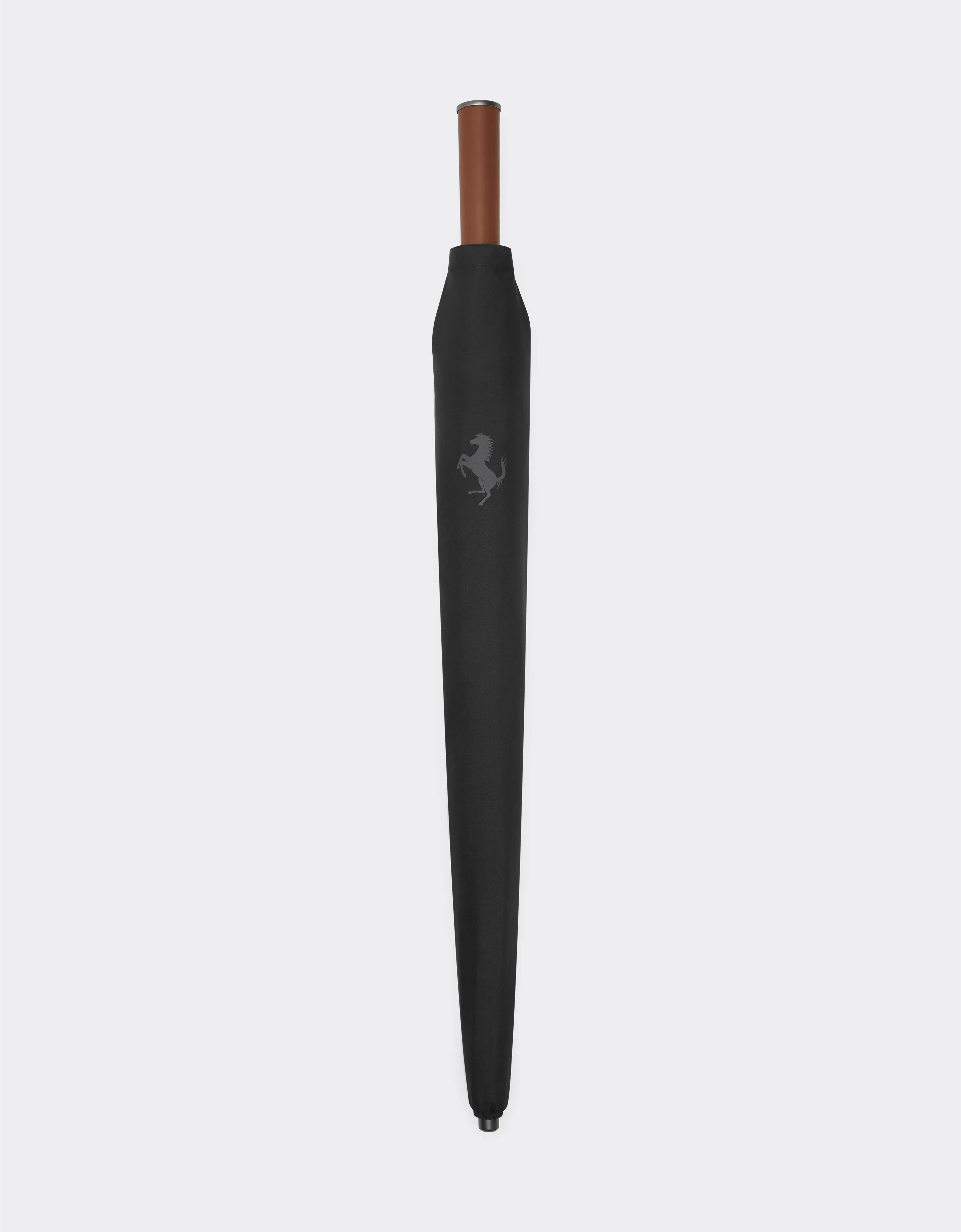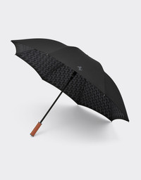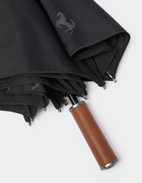 Umbrella with solid-colour exterior and interior personalised with all-over Cavallino Pixel motif. Handle in contrast leather. This Italian-made accessory further features an automatic opening and closing system and tone-on-tone pouch. DETAILS - Cavallino Pixel print - Leather handle - Automatic opening and closing system - Customised pouch - Color:Black MATERIALS 100%Plastic Product Code: 20382f01