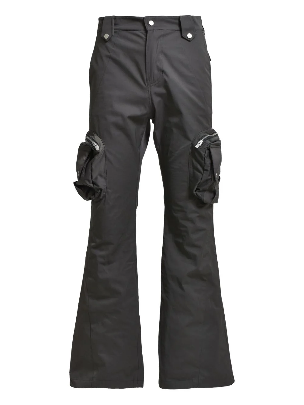 flared cargo trousers Highlights - Black - Adjustable rear strap - Side cargo pockets - Button and fly fastening - Two rear flap pockets Imported Composition Polyester 65%, Cotton 35%