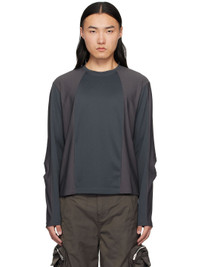 Polyester pique and waffle-knit stretch nylon T-shirt. · Paneled construction · Crewneck · Thumbhole at cuffs Supplier color: Charcoal/Dark grey Body 1: 100% polyester. Body 2: 82% nylon, 18% spandex. Made in South Korea 251081M213001