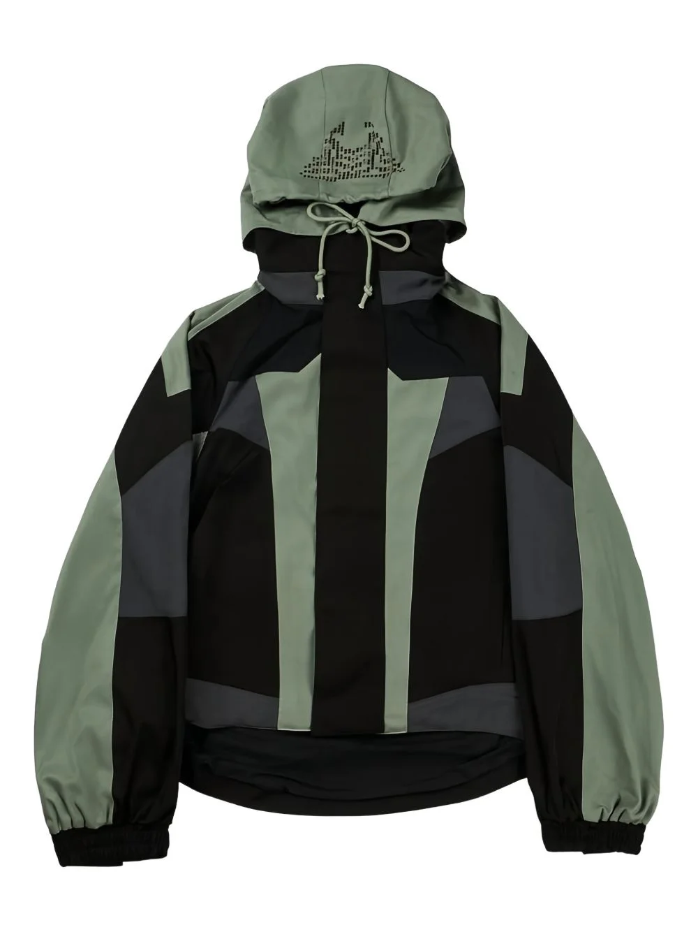 panelled hooded jacket Highlights - Tokyo green - Panelled design - Drawstring hood - Elasticated cuffs - Embroidered detail - High-low hem Imported Composition Nylon 100%, Wool 60%, Polyester 40% Washing instructions Read Manufacturer Guidelines