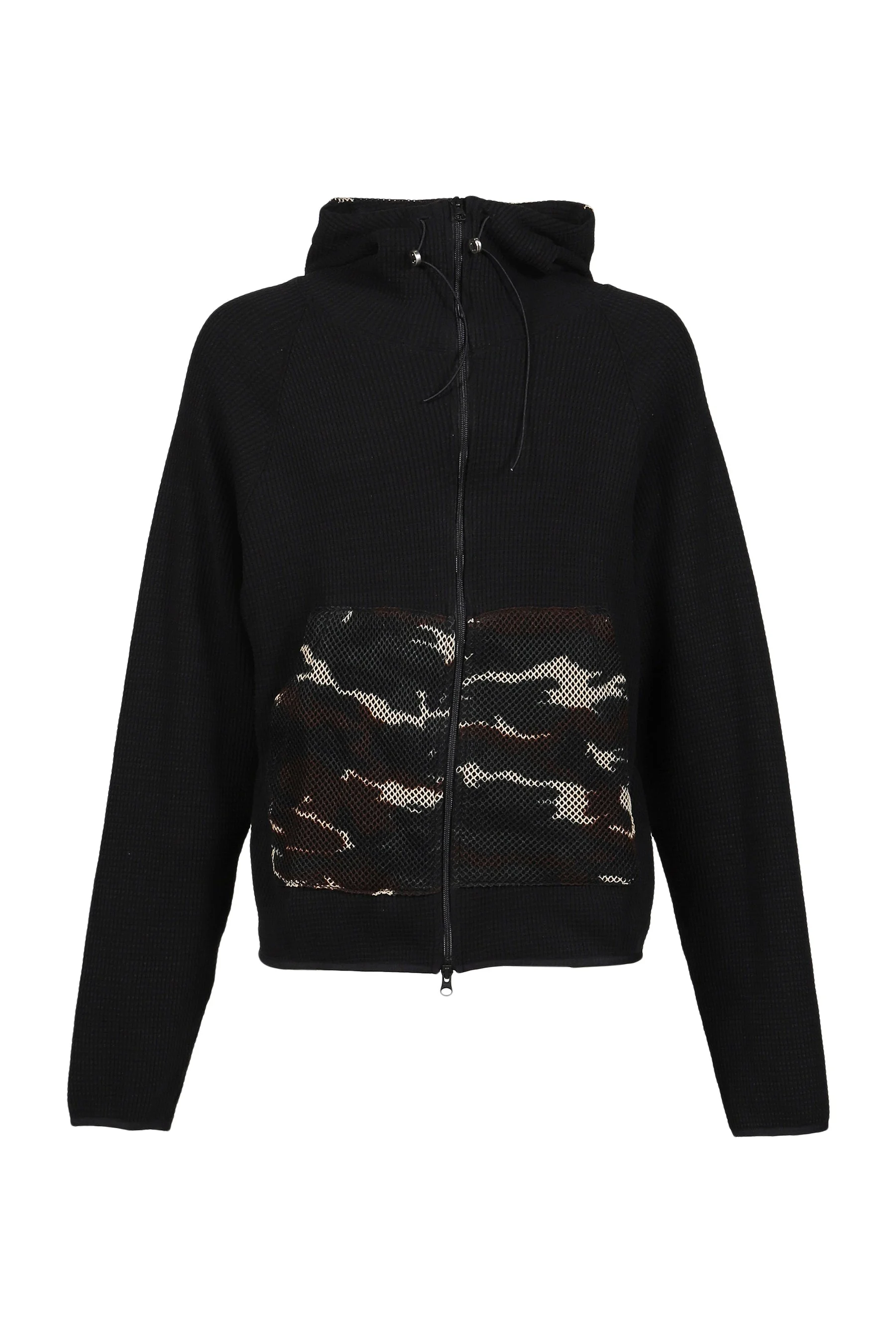 WAFFLE KNIT LINER ZIP HOODIE / BLK