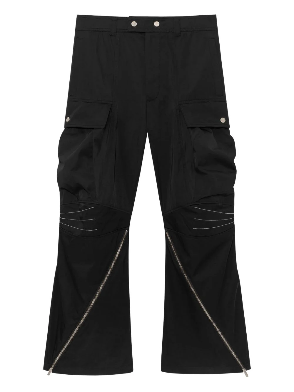 zip-detail cotton cargo pants Highlights - Black - Side zip-fastening - Knee stitching - Front flap-pockets - Button fastening - Belt loops Imported Composition Cotton 65%, Polyester 35% Washing instructions Read Manufacturer Guidelines